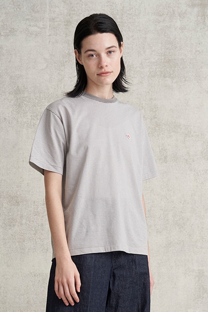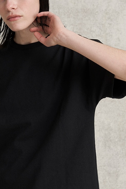 ネック部分のリブもやや細めに設定しているため、華奢なアクセサリーとの相性も良く、カジュアルになり過ぎないデザインが魅力。