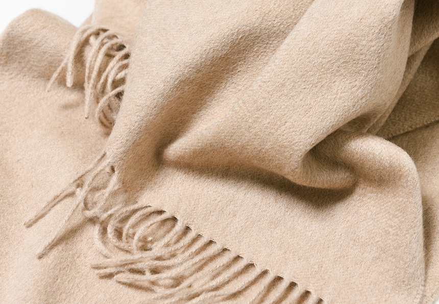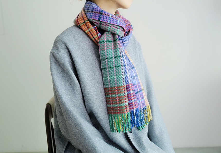 しっとりと滑らかなカシミヤは、単に風を防ぐだけでなく、ふんわりと包み込んでくれるような巻き心地が魅力です。