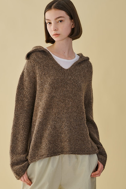 首回りがざっくりと開いたセーラーカラーニット。