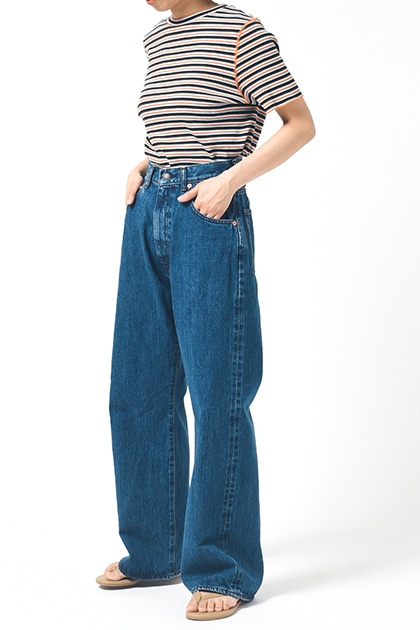 型から別注をかけたハイウエスト5Pデニム。