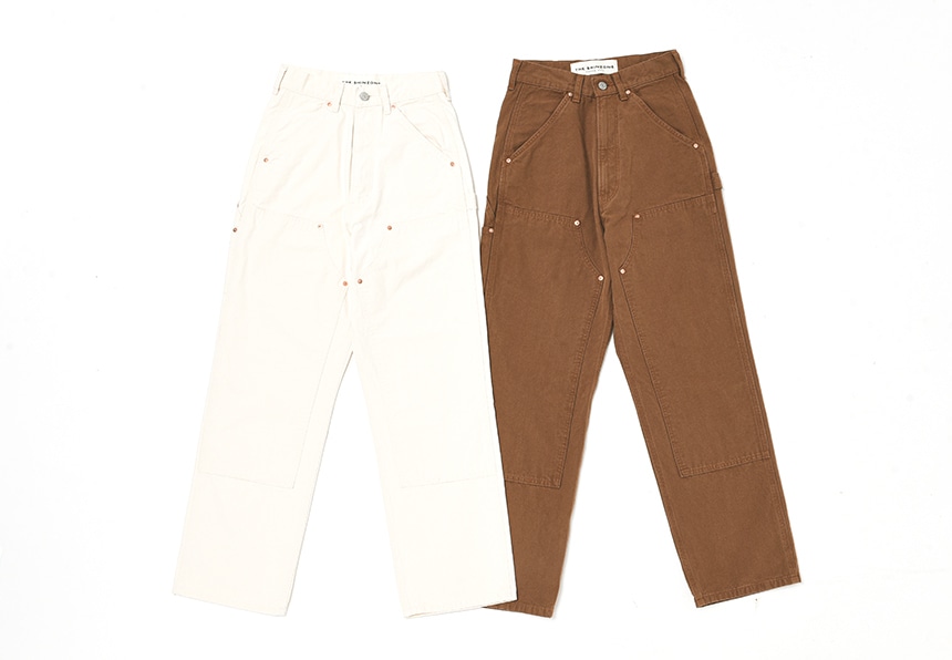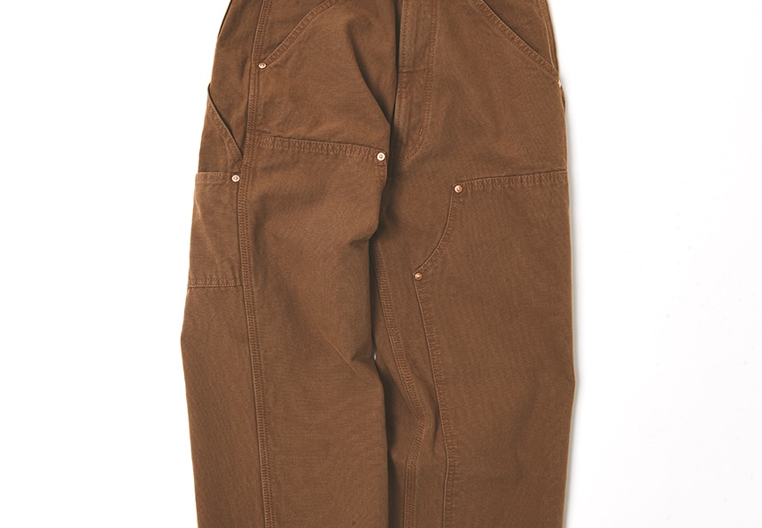 ダブルニーパンツならではの、リベットやハンマーループのディテールがポイントです。