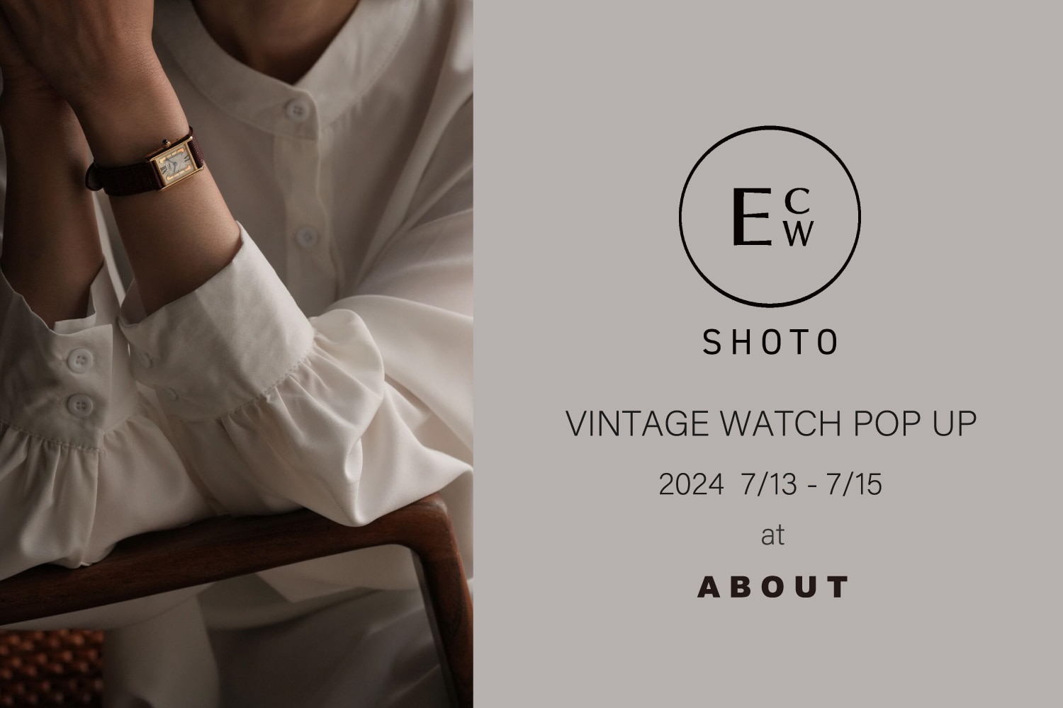 7月13日(土)~7月15日(月祝)の期間、ABOUTにて「ECW SHOTO」によるヴィンテージウォッチのポップアップを開催いたします。