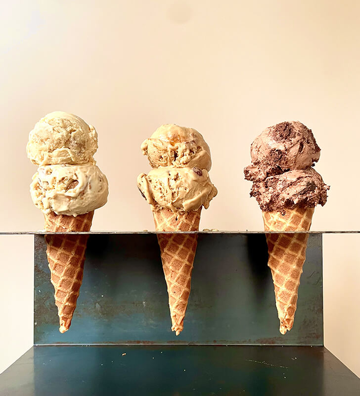 ポップアップイベント限定フレーバーの「AMERICAN CHERRY」を含めた4種類のアイスクリームからチョイス、もちろん手焼きの自家製コーンでお召し上がりいただけます!(コーン or カップで提供)