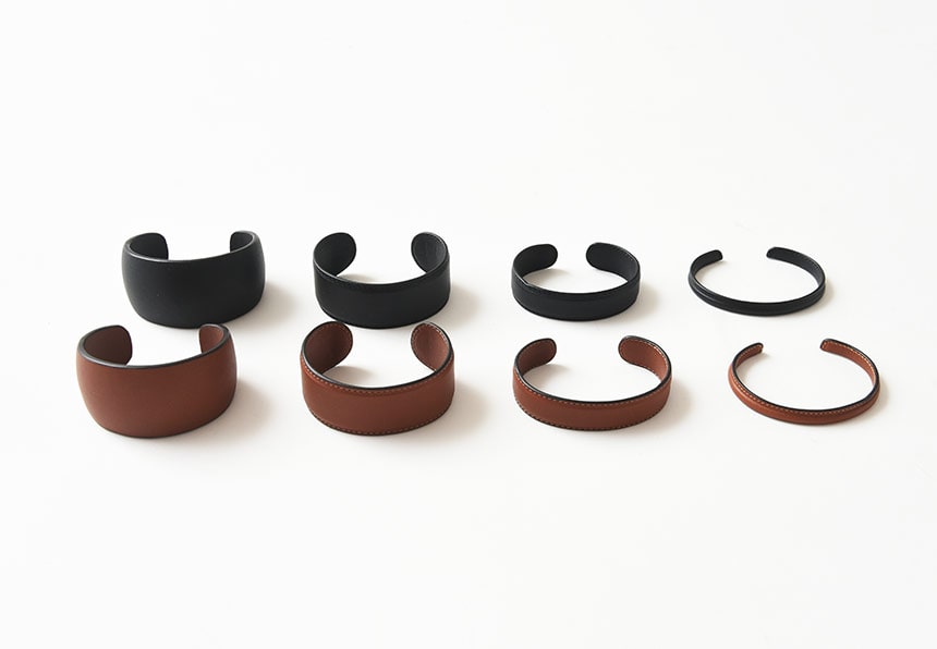 BRACELETS PLAT GAINE ¥25,300-、COATED AND STITCHED BRACERET ¥22,000-
