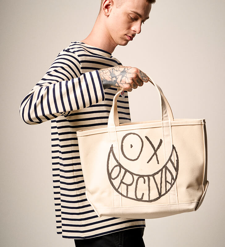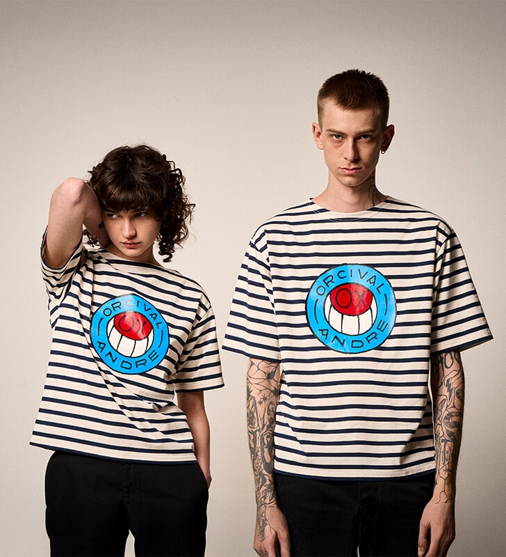 Mr.AがORCIVALの定番ボーダーシャツに微笑みかけ、フレンチカジュアルにポップなひねりが加わっています。日常にアートを取り入れるアイテムがラインナップしました。
