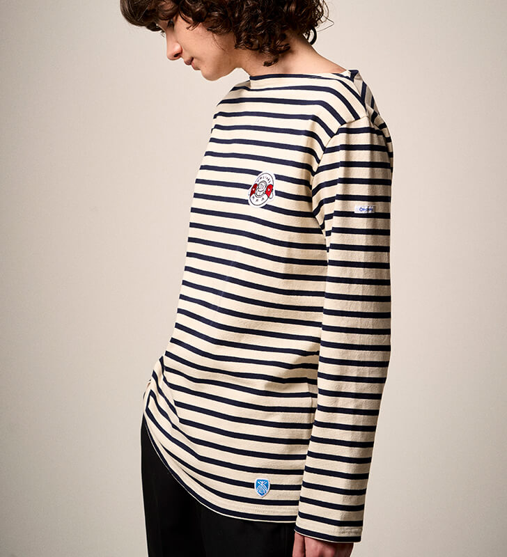 ORCIVALの定番ラッセル生地のボーダーマリンシャツに、ANDREのアート刺繍が施されたパッチがポイントのスペシャルモデル。