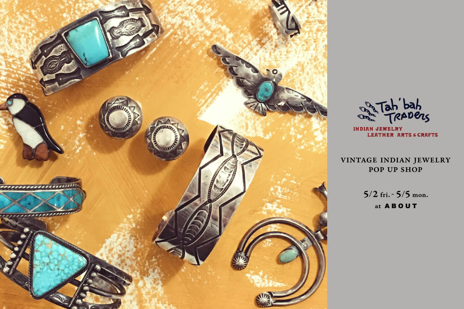 2025年5月2日(金)~5月5日(月)の期間、ABOUT(神戸本店 同ビル2F)にて『Tah’bah TRADERS』によるヴィンテージインディアンジュエリーのPOP UPを開催いたします!